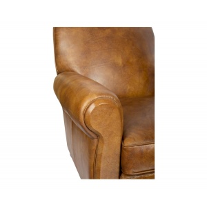 The Club Moustache armchair in cowhide leather features a timeless design with rounded armrests.