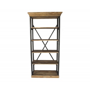 This medium industrial shelf, made from aged pine wood and hammered black metal, offers a robust and authentic design. Perfect for optimizing storage in industrial-style interiors. Dimensions: H220 x W100 x D44 cm.