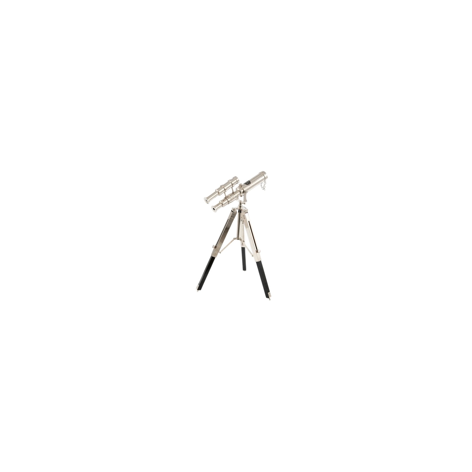 Enhance your interior with this decorative brass telescope mounted on a wooden tripod. Measuring 42x26x27 cm, it serves as an ideal centerpiece for your living room, office, or library. The vintage design and quality materials add a sophisticated and authentic touch to your decor.