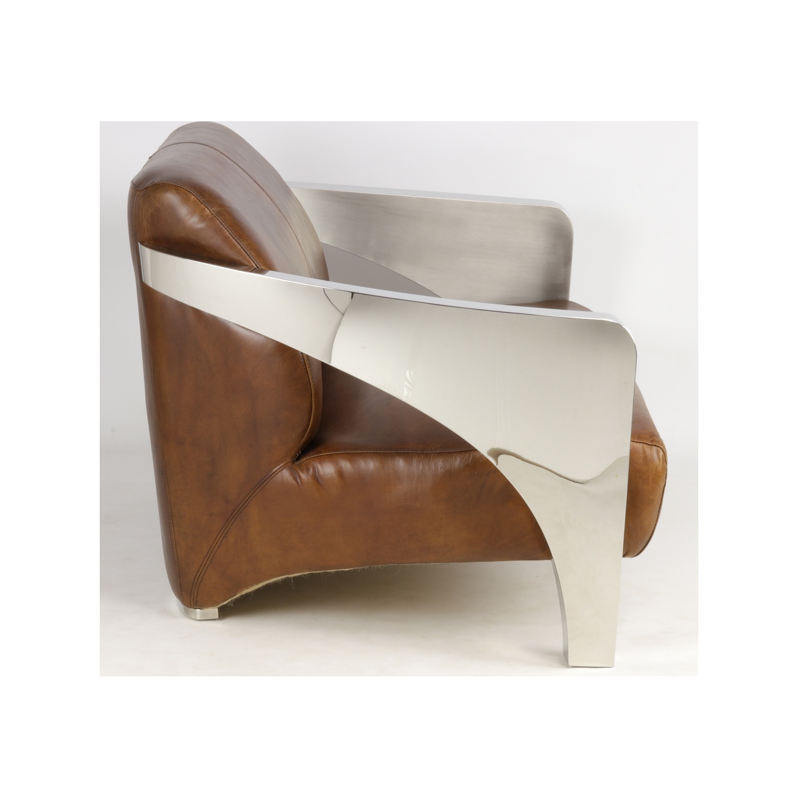The Le Rutilant sofa combines cowhide cigar leather with chrome-plated steel...