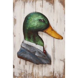 Enhance your interior with this "Mr Duck" wall art made of metal and wood....