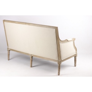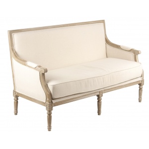 Ce canapé style Louis XVI, mesurant 140 cm de longueur, est une pièce élégante et confortable pour tout intérieur classique ou vintage. Fabriqué en bois d'orme avec une finition blanche vieillie, il combine l'authenticité du bois aux irrégularités naturelles et une assise en mousse de polyuréthane avec sachets ressorts et plumes pour un confort optimal. Ce canapé 3 places est idéal pour ajouter une touche de raffinement dans votre salon. Dimensions : H90 x L140 x P68 cm, assise H45 x L131 x P55 cm.