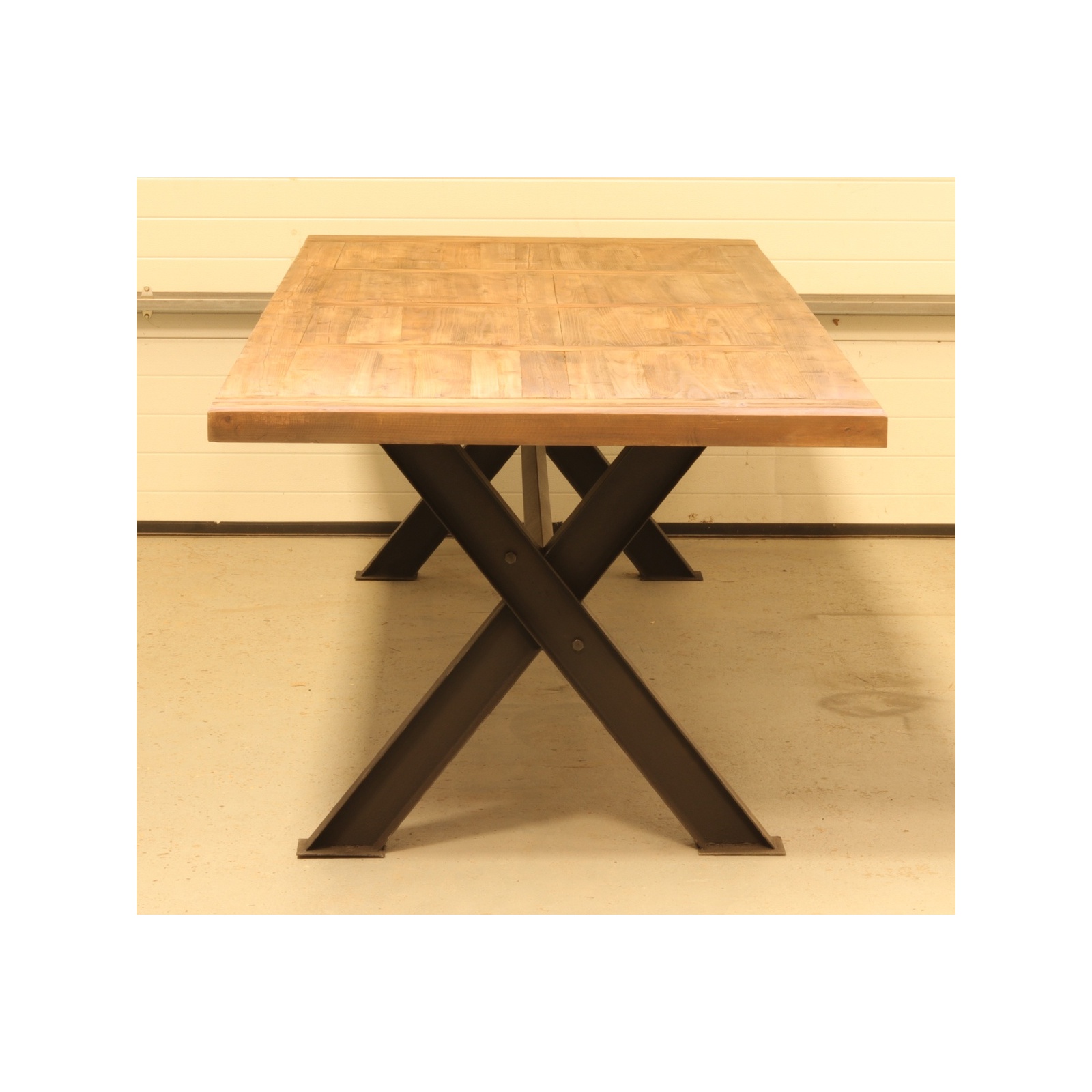 Cette table de repas industrielle de 300 cm de longueur est fabriquée en métal noir martelé et bois de pin recyclé, offrant un design robuste et authentique. Sa grande taille est idéale pour accueillir plusieurs convives dans un espace au style loft ou vintage. À assembler soi-même, cette table se distingue par l'authenticité du bois naturel vieilli, avec des irrégularités naturelles témoignant de ses vies antérieures. Parfaite pour une salle à manger ou un grand espace. Dimensions : H78 x L300 x P100 cm.
