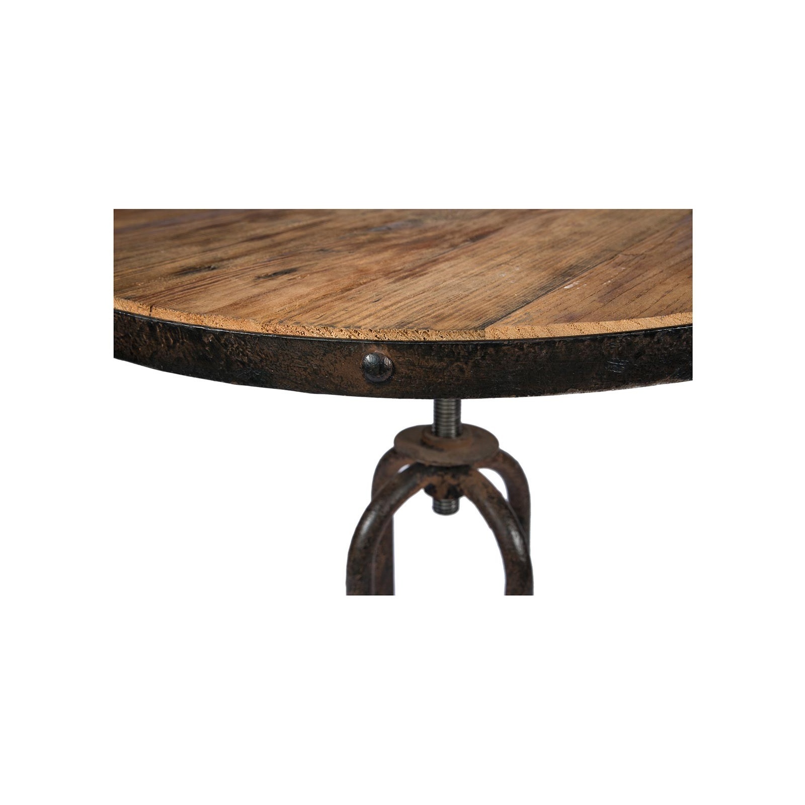 Cette table haute associe du bois de pin vieilli et du métal noir martelé...
